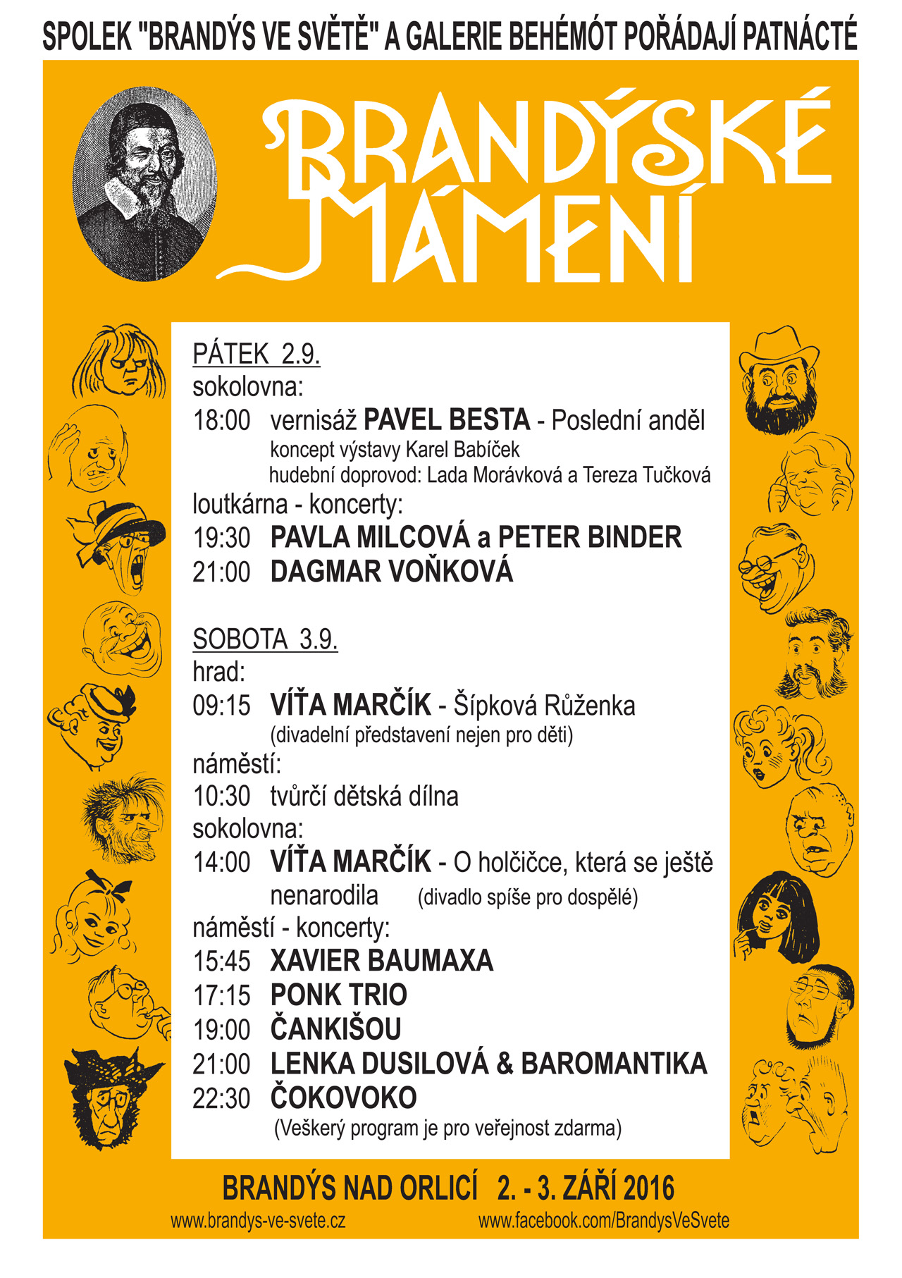 ← Zpět na článkyBrandýské mámení 3.9.30. srpna 2016V sobotu 3.9. zahrajeme na festivale Brandýské mámení v Brandýse nad Orlicí. Koncert se koná na přímo na náměstí a vystoupí samé parádní kapely. Vstup je navíc zdarma, tak se stavte.