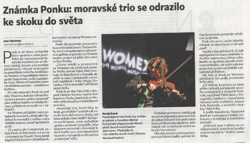 ← Zpět na článkyPonk v Hospodářských novinách9. listopadu 2016Hospodářské noviny o naší účasti na WOMEXu v Santiago de Compostela. (2.11.2016) http://archiv.ihned.cz/c1- 65498810-ponk-hudba-womex- veletrh